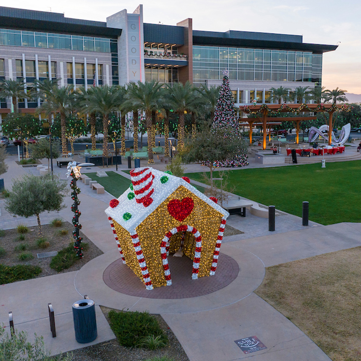 Destination-worthy designs, RGB displays, and tower trees for downtown districts, plazas, government buildings, parks, airports, and public spaces.